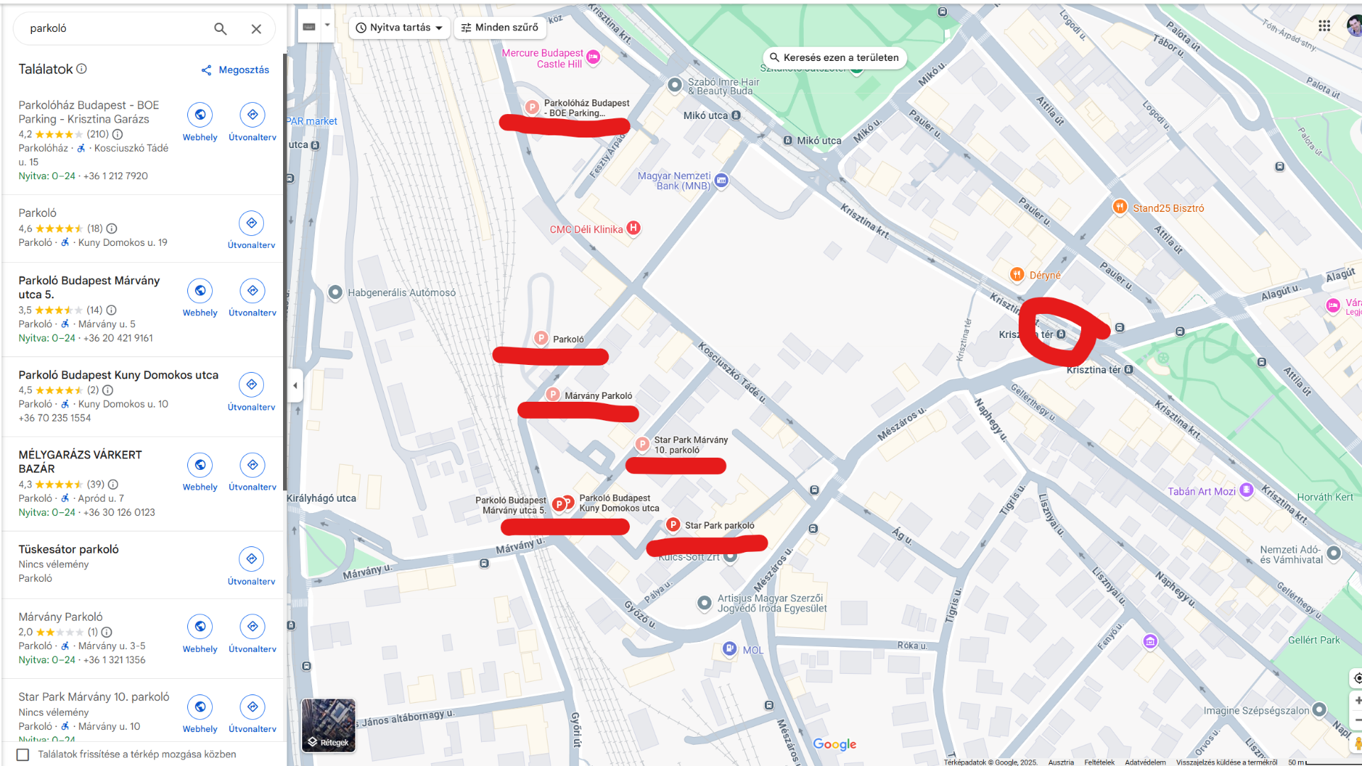A parkolók helyzete megtekinthető az utolsó csatolt képen vagy ezen a linken: https://www.google.com/maps/search/parkol%C3%B3/@47.4965011,19.027845,17.5z?entry=ttu&g_ep=EgoyMDI1MDUyNi4wIKXMDSoASAFQAw%3D%3D